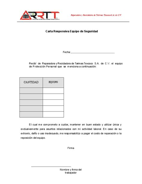 Carta Responsiva Entrega De Gafete  Recipes Pad m